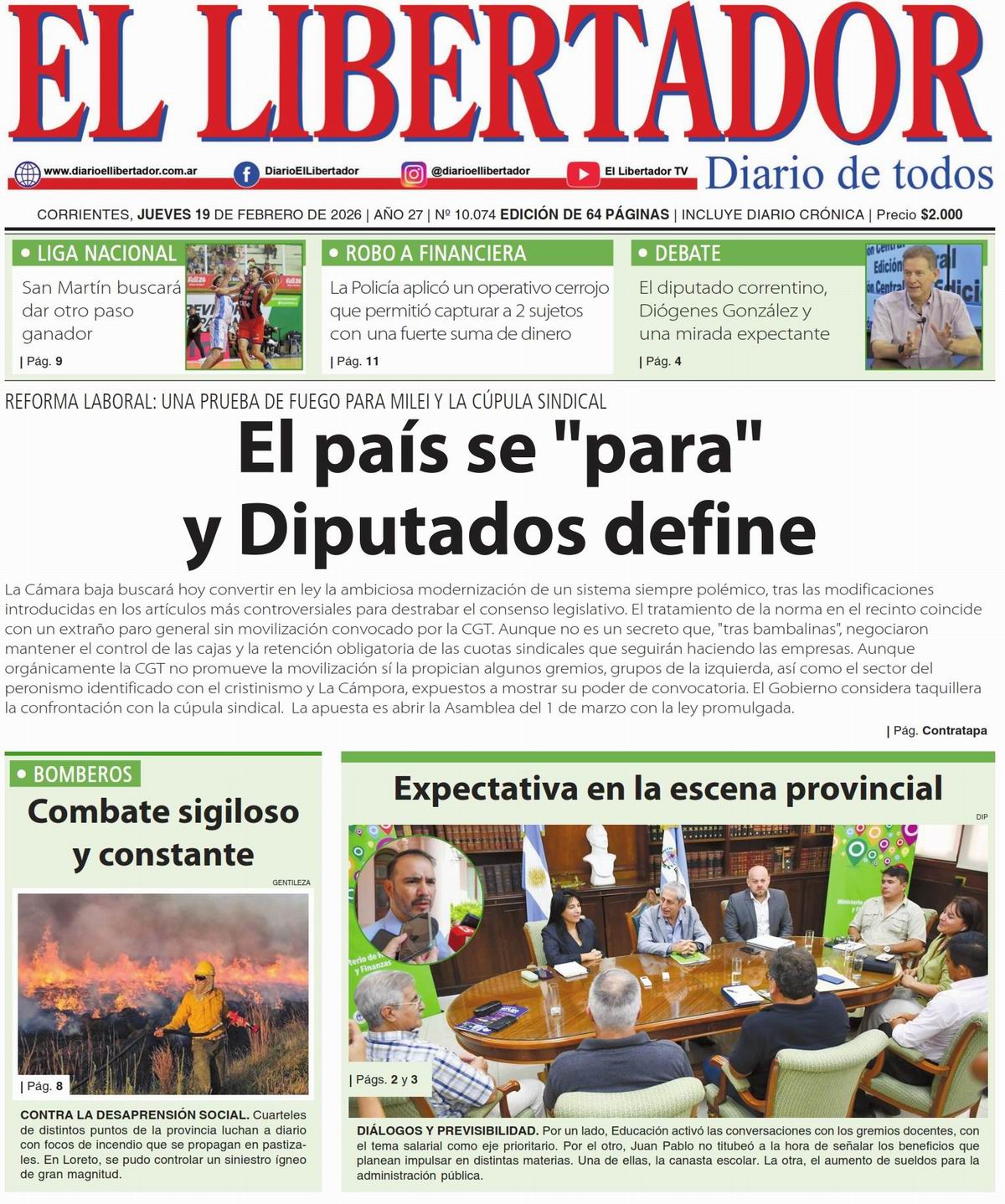 - Tapa y Contratapa 19 de febrero de 2026