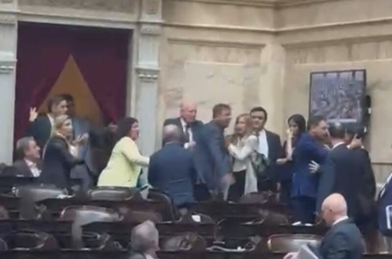La pelea entre ambos escaló rápidamente, con empujones y gritos en el recinto, hasta que otros legisladores intervinieron para separarlos.