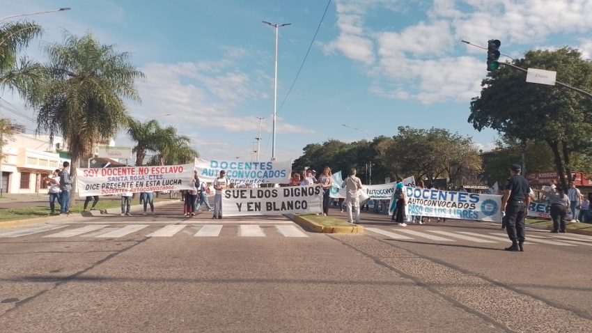 Un grupo de docentes autoconvocados y policías retirados realizó una protesta en la mañana de este sábado 3, en Capital. Hubo corte de tránsito de uno de los accesos al puente interprovincial General Belgrano a media mañana. Ello generó demoras en el cruce del viaducto.