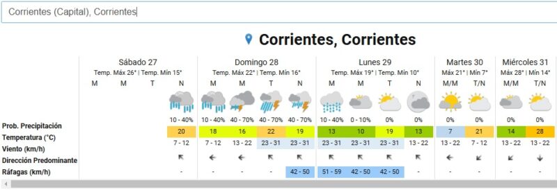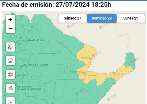 La advertencia para Corrientes es de color amarillo, lo que implica, según explica organismo: “Posibles fenómenos meteorológicos con capacidad de daño y riesgo de interrupción momentánea de actividades cotidianas”.