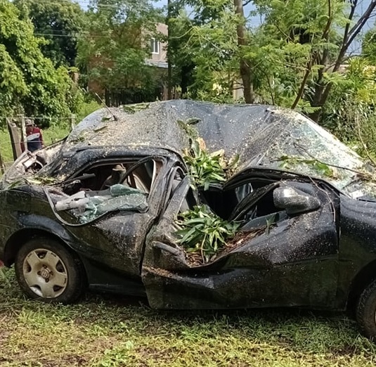 En la primera de ellas, por ejemplo, un enorme árbol cedió ante la tormenta y cayó sobre un Volkswagen Gol Trend que se encontraba en el patio de una vivienda ubicada frente a la plaza Belgrano, informó en su Facebook Redes Sociales Caá Catí. Y como suele suceder, Telecom y el recurrente problema de sus postes caídos por tormentas, como el de la calle San Martín frente al polideportivo donde se interrumpió el tránsito. Además, informó que personal de la Dirección Provincial de Energía de Corrientes (Dpec) y la Municipalidad de Lomas de Vallejos encararon trabajos para reponer el servicio de energía eléctrica, ya que el vendaval en la aterradora madrugada de este sábado derribó más de 30 postes del tendido de la red.