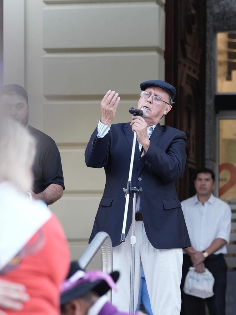 La jornada tuvo un brillo especial con la presencia del Bocha Sheridan. Con su voz inconfundible, el artista logró que pacientes que asomaban por las ventanas, personal médico de ambo y vecinos de la zona se detuvieran por un instante para compartir un sapucay espontáneo.