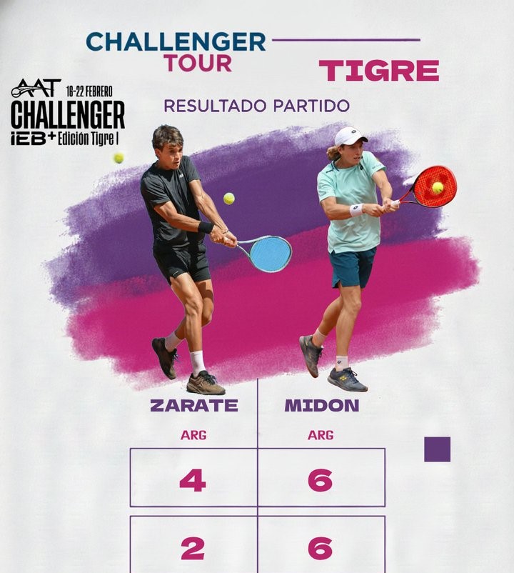 En match correspondiente a los octavos de final del AAT Challenger edición Tigre I, que se disputa sobre las canchas de polvo de ladrillo del Club Náutico Hacoaj y reparte 63 mil dólares en premios, en el duelo entre correntinos, prevaleció Lautaro Midón al imponerse 6-4 y 6-2 a Carlos María Zárate.