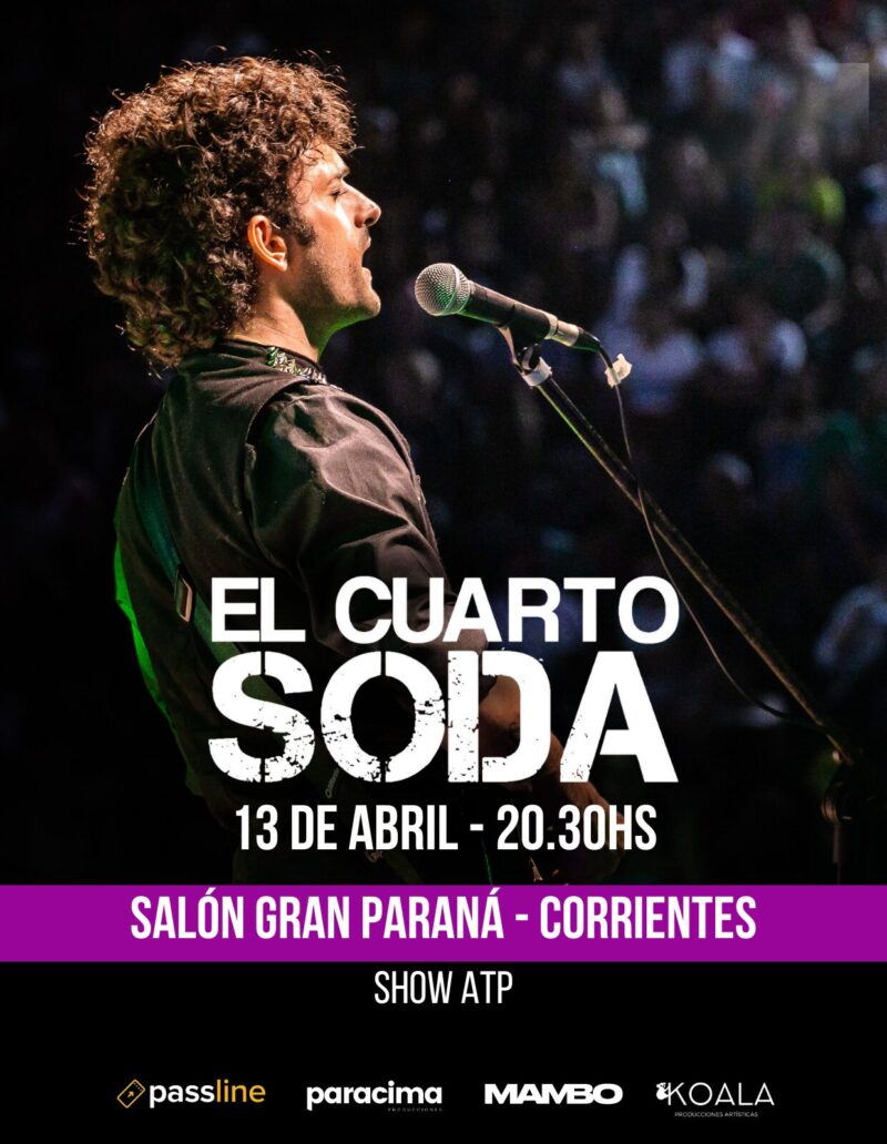 “Pido que la gente venga con la euforia con la que suele venir porque nos encanta. Además, si bien el formato del salón Gran Paraná es con sillas, siempre que salimos al escenario están parados y se quedan así, cantando y bailando”, mencionó y dijo que el público de Corrientes “es súper receptivo, muy cálido, buena onda, canta de principio a fin porque al fin de cuentas El Cuarto Soda somos todos”.