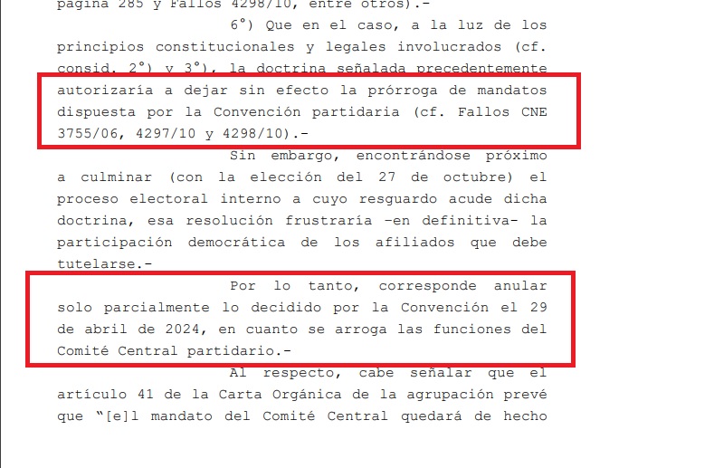 “Les mando a estudiar a los chicos que estaban opinando”, espetó en alusión a los referentes que tomaron la palabra en los medios para asegurar que la fecha del domingo 27 se mantenía vigente. “La parte resolutiva no dice absolutamente nada, eso es materia de resolución de los órganos partidarios”, aseveró al respecto.