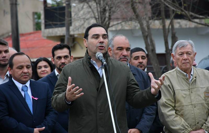 Posteriormente, la comitiva se trasladó a la intersección de las calles Nepomuceno Alegre y Belgrano, donde se realizó el corte de cintas de obras de desagües pluviales.