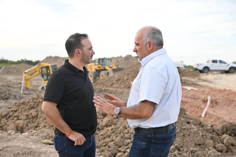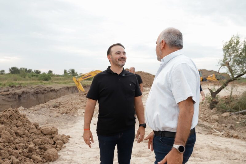 El gobernador Juan Pablo Valdés, este fin de semana, acompañado por el intendente Claudio Polich, recorrió las obras del nuevo canal derivador que permitirá mejorar el drenaje de una amplia área urbana y prevenir anegamientos en barrios de la zona norte, al redirigir el escurrimiento de agua hacia un sistema preparado para recibir mayores caudales.