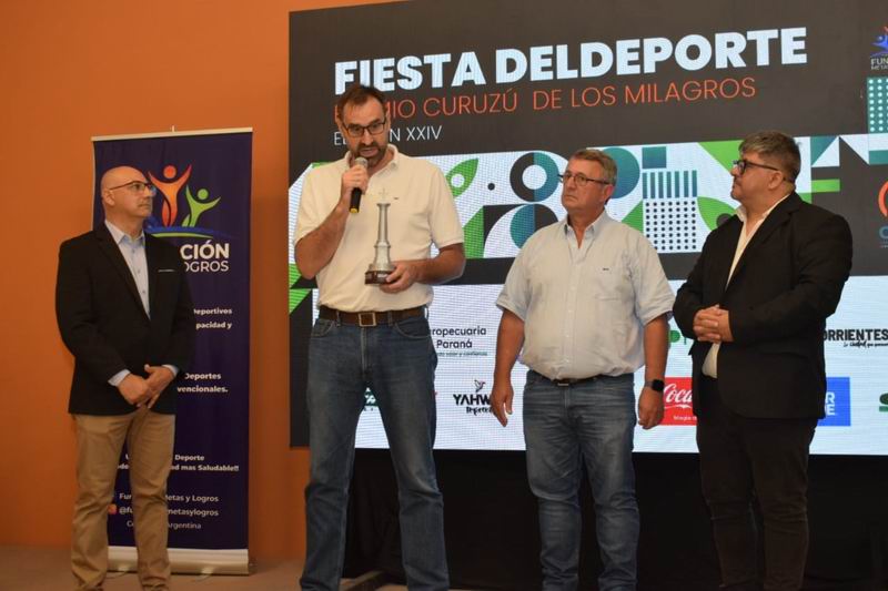 El «yacaré» escuchó atentamente los motivos por los que recibió el Curuzú de Platino, premio que homenajea a aquellos hacedores de jornadas de gloria y medallas en los últimos 20 años del deporte correntino.