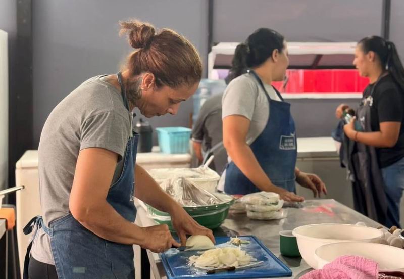 La dinámica es intensa y las jornadas de producción se extienden desde la madrugada hasta el mediodía, preparando rellenos y procesando insumos frescos. «Los cocineros se encargan de esa búsqueda del sabor. Si no está bueno el producto, no lo sacamos», sentencia Medina.