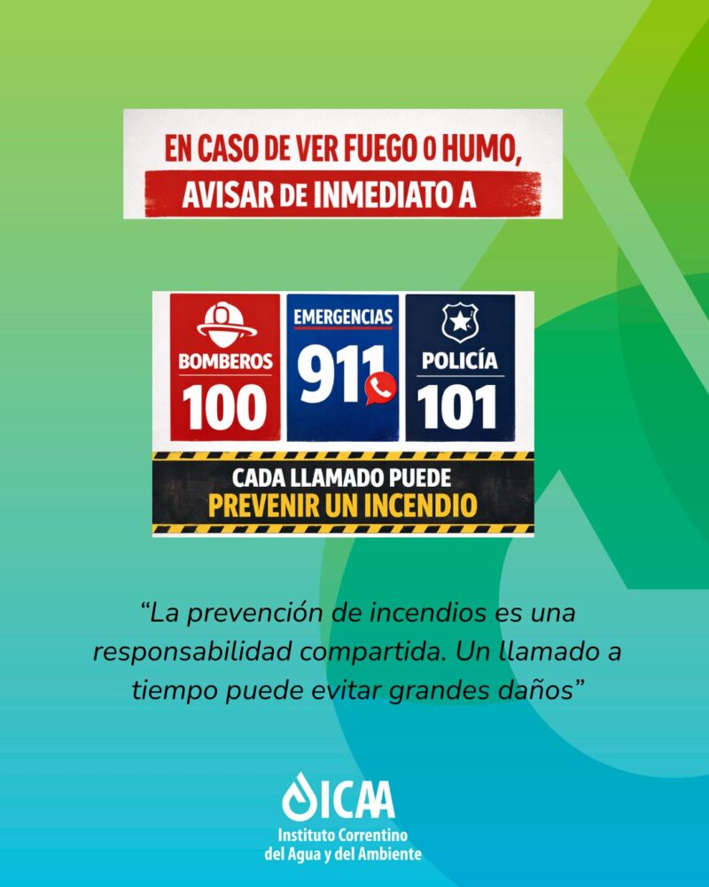 Ante el incremento del riesgo de incendios rurales y forestales en distintos puntos de la provincia, el Instituto Correntino del Agua y del Ambiente (ICAA) reiteró la necesidad de extremar las medidas de prevención para proteger el ambiente, los recursos hídricos, la producción y la seguridad de las personas.