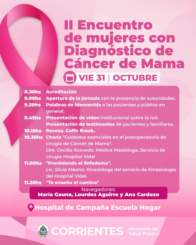Este segundo Encuentro reafirma el compromiso del Ministerio de Salud Pública de Corrientes de brindar un espacio de conocimiento científico, apoyo emocional y acompañamiento humano a las mujeres que enfrentan esta enfermedad.