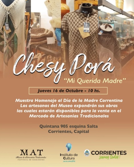El Museo de Artesanías de Corrientes inauguró la exposición “Chesy Porá”, una propuesta organizada en conjunto con el Instituto de Cultura y el Gobierno provincial en homenaje a la madre correntina. La muestra, cuyo título en guaraní significa “madre querida”, ofrece un recorrido visual y simbólico por la figura materna como núcleo afectivo, cultural y espiritual de la identidad local.