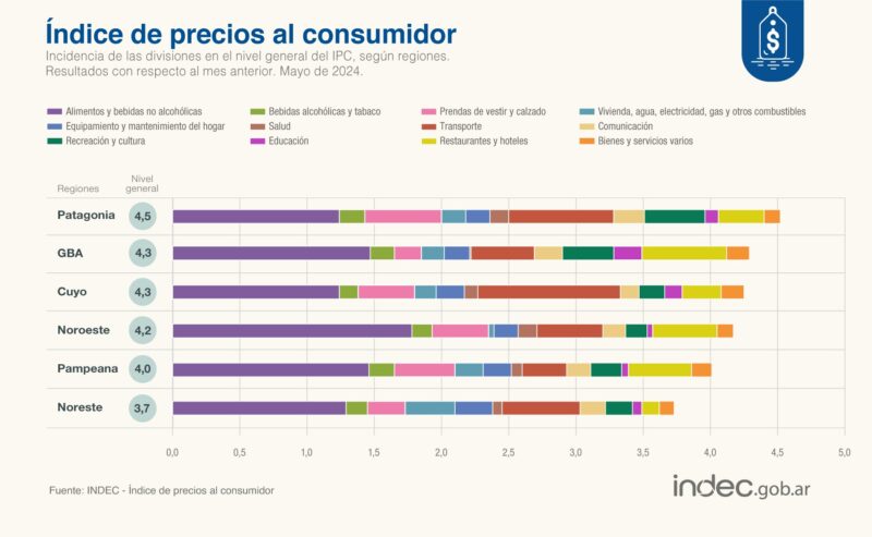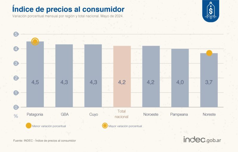 Por delante del NEA, que tuvo por mucho el índice más bajo a escala nacional, el resto de las regiones registraron las siguientes cifras en abril: Gran Buenos Aires, 4,3 por ciento; Noroeste (NOA), 4,2; Pampeana, 4, y Patagonia, 4,5.