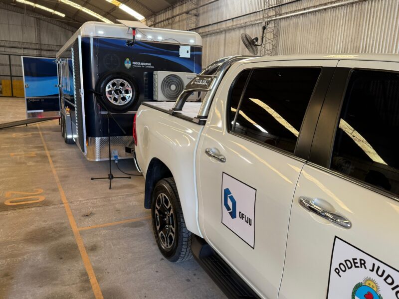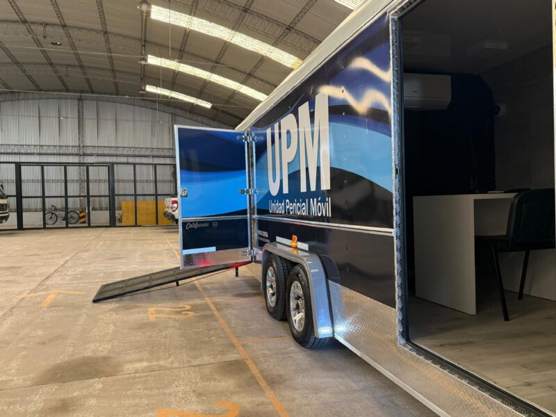 El moderno tráiler incorpora dos oficinas o consultorios totalmente equipados para la realización de entrevistas y/o pericias médicas, psicológicas o sociales.