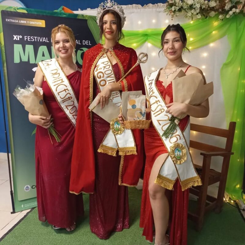 El momento de mayor emoción llegó con la coronación de la nueva reina del Festival, distinción que este año recibió la joven Brisa Meza. La corte se completó con Tania Beltrame y Julieta Falcón, electas como primera y segunda princesas respectivamente, quienes tendrán la tarea de representar a la localidad durante todo el año.