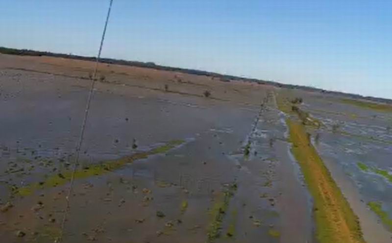 En las primeras imágenes se observa al ganado pastando el lunes por la tarde, mientras que en el segundo video se ve la misma zona del establecimiento bajo agua, menos de 24 horas después.