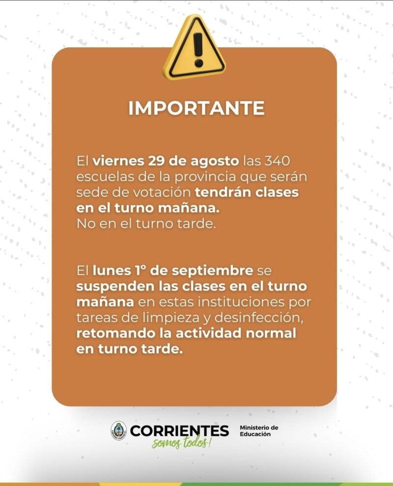 El subsecretario Navías detalló el esquema de funcionamiento: “El viernes las escuelas donde se vota tendrán clases durante la mañana y recién al mediodía se hará cargo la junta electoral para el inicio del armado de los cuartos oscuros”, dijo en tanto agregó: “el lunes es solo el turno mañana el que no tiene clases porque se hace la limpieza y desinfección, pero el turno tarde si tendrá actividad normal”.