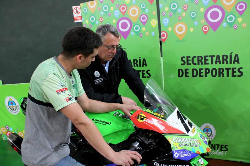 El joven piloto correntino visitó este martes la sede de la Secretaría de Deportes de la Provincia, oportunidad en que presentó su flamante motocicleta con la cual compite la temporada 2023 del Superbike (categoría Reina Pro).