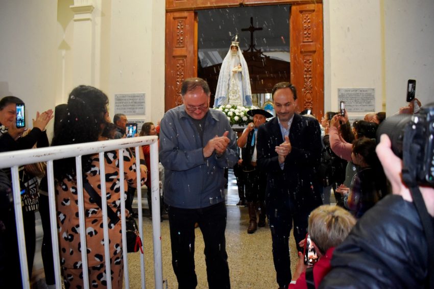 Los fieles aguardaron el momento de la salida de la Virgen, como es tradicional cada 7 de octubre, para recibir la gracia de la Madre, el saludo como forma de gratitud. El emotivo encuentro con el pueblo se dio tras ser portada por la Agrupación Gaucha “Renacer” de Porvenir en andas para saludar a los fieles.