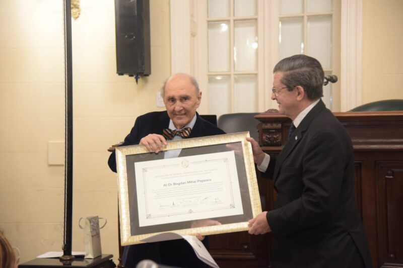 A lo largo del acto se escucharon palabras de colegas y discípulos que reforzaron el retrato de Popescu como “maestro en medicina”.