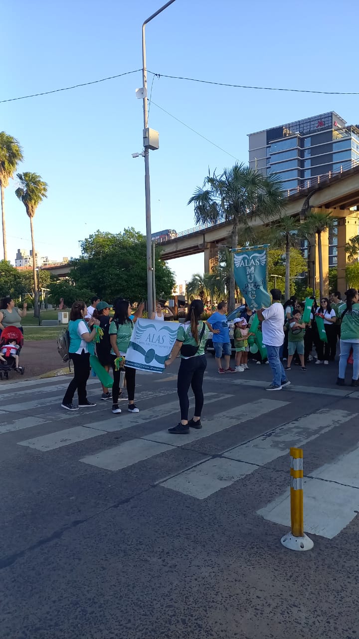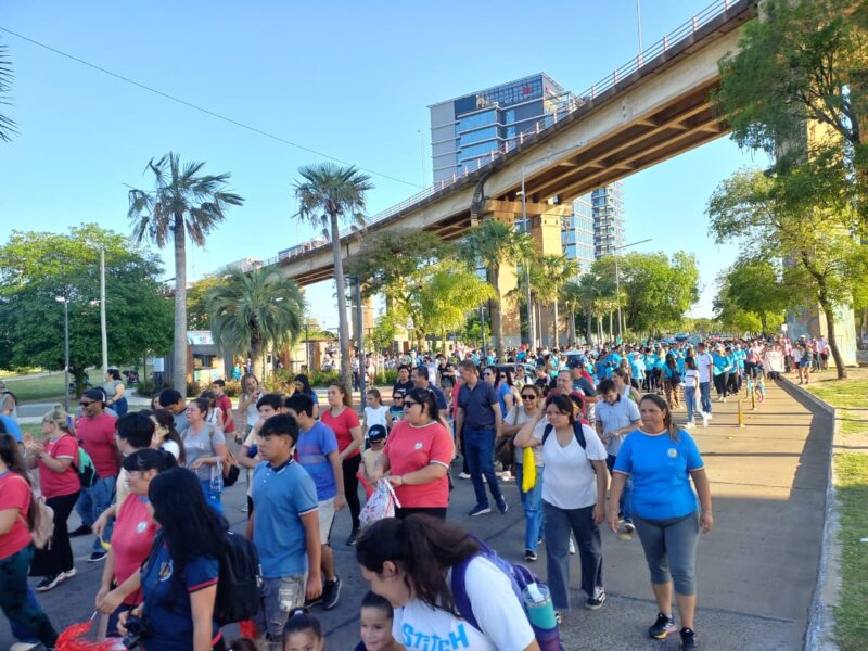 La caminata partió debajo del puente hasta el anfiteatro José Hernández donde se vivió una tarde llena de alegría y música, con la presentacion de la orqueta de la pilicía y de una colorida murga.