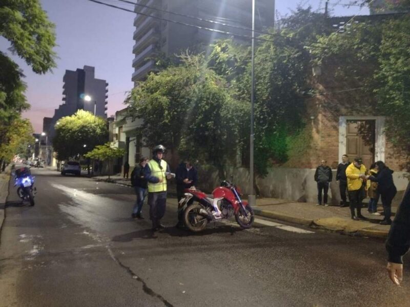 En la concurrida zona de Belgrano y Mendoza de la ciudad de Corrientes, una agente de tránsito, fue embestida por una motocicleta mientras trabajaba ordenando la circulación de vehículos. La mujer fue trasladada a un centro de salud.