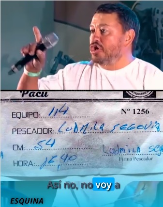 «Yo soy el número 114 y no voy a sortear porque mi pacú tenía 54 centímetros y por una foto mal sacada me quieren arruinar la fiesta. Yo no voy a sortear porque tengo pruebas y por eso nosotros, los pescadores, queremos otra cosa, queremos transparencia en nuestra fiesta, porque sino, nuestra fiesta estará cada vez más bajo, cada vez más bajo. Estas cosas no se hacen, no se hacen. Yo hace 25 años que participo, nunca gané una fiesta, ahora gané y me quieren cagar ¡Así noooo!», dijo ofuscado el demandante a viva voz, lo que se hizo viral en las redes y otros medios.
