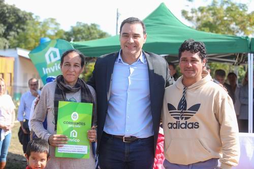 El gobernador, Gustavo Valdés encabezó este viernes la entrega de 10 viviendas del programa Oñondivé en el paraje Galarza, departamento Santo Tomé, dando inicio con ese acto a su jornada de actividades en el Norte provincial, lugar donde además inauguró un Destacamento de la Policía Rural e Islas y Ambiente Rural (Priar).