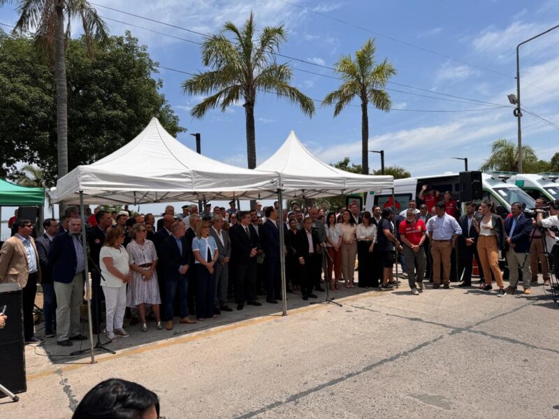 Con el río Paraná como telón de fondo se concretó este mediodía, la entrega de dos decenas de ambulancias a centros de Salud de la Provincia. El acto, realizado en la costanera sur de la Capital, estuvo encabezado por el gobernador, Gustavo Valdés, junto al ministro de Salud, Ricardo Cardozo, acompañados de autoridades y funcionarios del gabinete provincial y por supuesto los representantes de hospitales y centros de salud que recibieron las flamantes unidades de traslado.