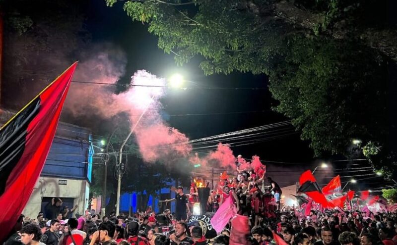 Esquina a puro carnaval: los simpatizantes de Yasí Berá tiñeron las calles de rojo y negro