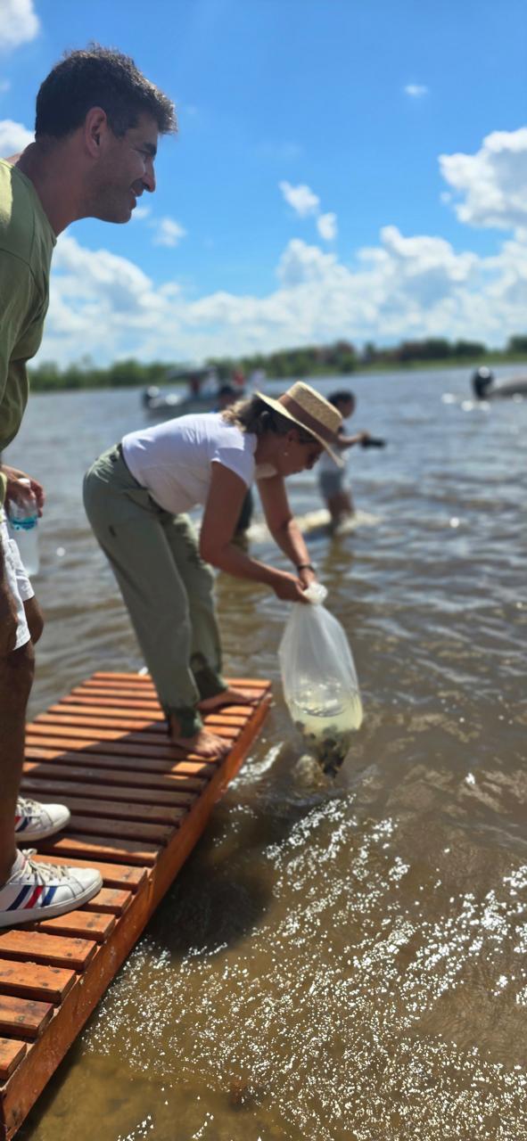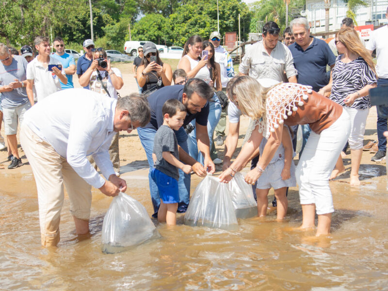 “Devolvamos al río un poco de lo que nos da”, con esta premisa se produjo la suelta simbólica de 1500 alevines de pacú en aguas del río Corriente, en inmediaciones a la playa de Esquina.