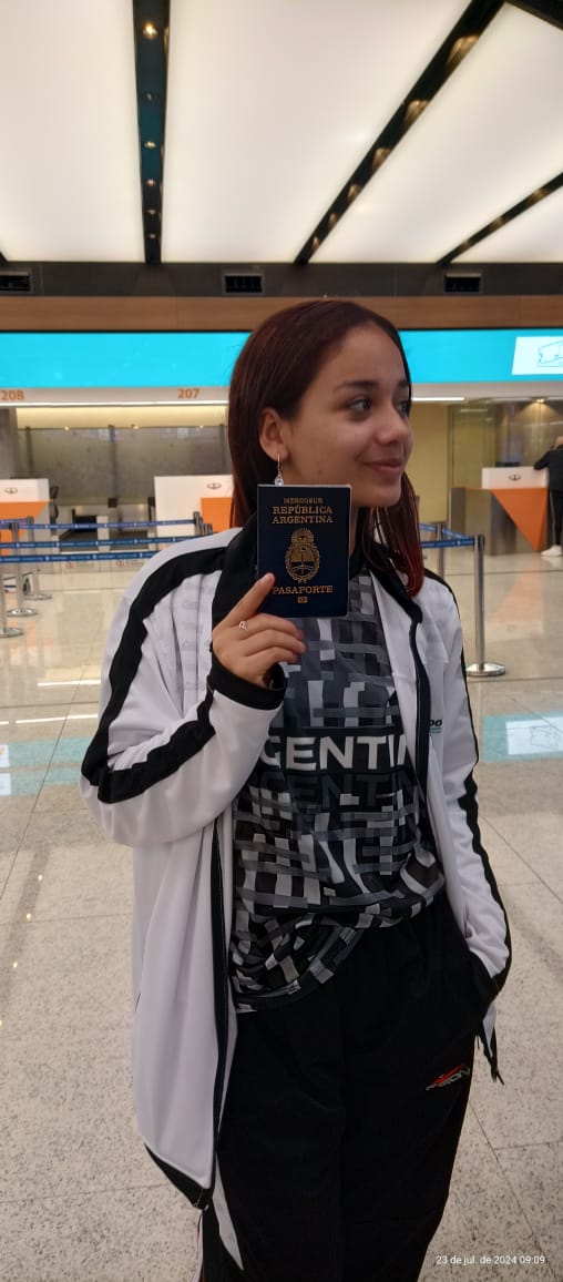 La taekwondista, además del grupo de competidores del país, también viajó acompañada por su entrenador, Isidoro Yucra y la DT nacional de Poomsae, Ciara Guzmán, responsable de la selección argentina Cadete.