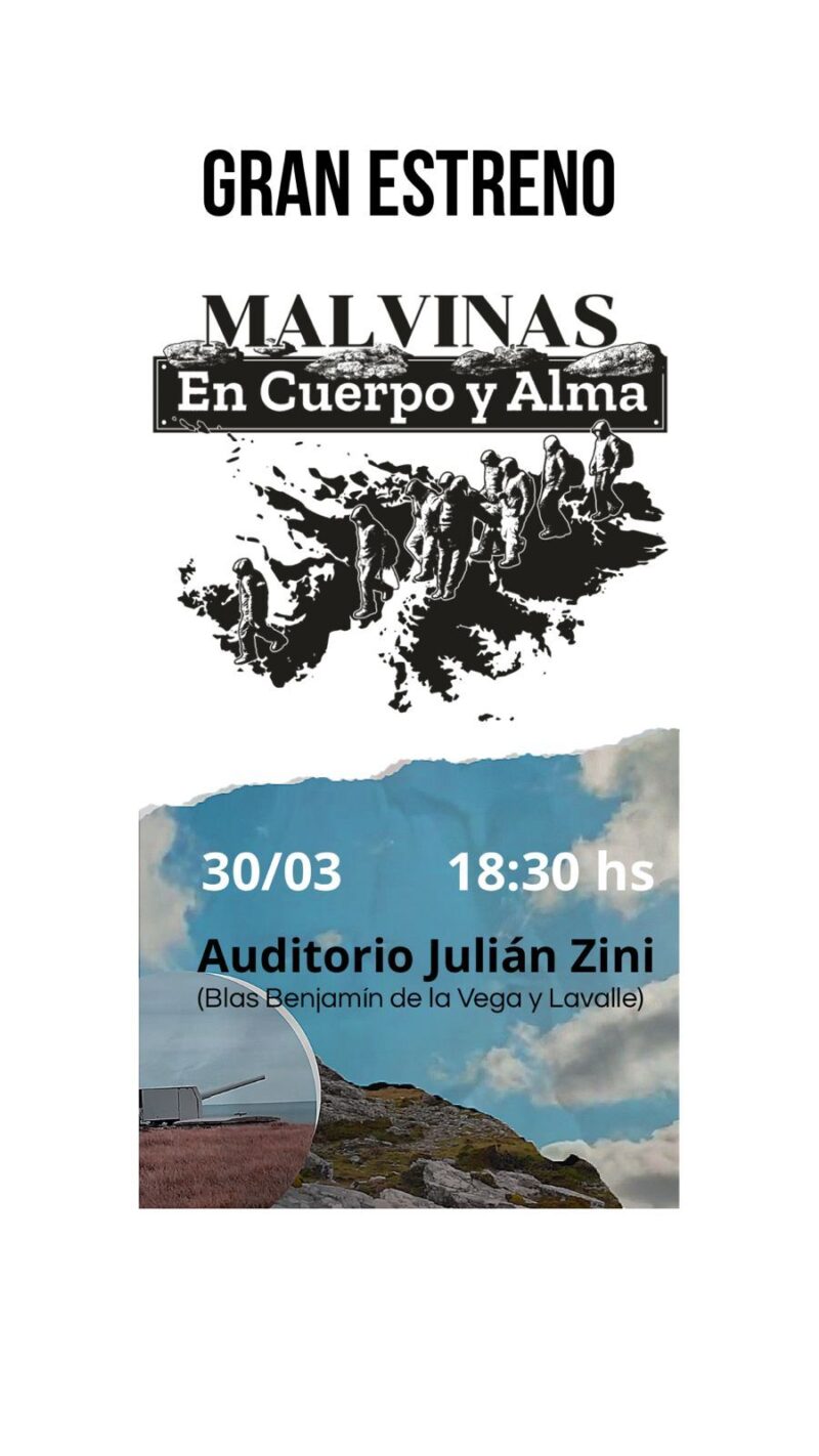 El lunes 30 de marzo, a las 18:30, se realizará la proyección del film en formato Avant Premiere de “Malvinas, en cuerpo y alma”, una obra sobre el quinto viaje que realizaron los excombatientes correntinos a las islas hace un año.