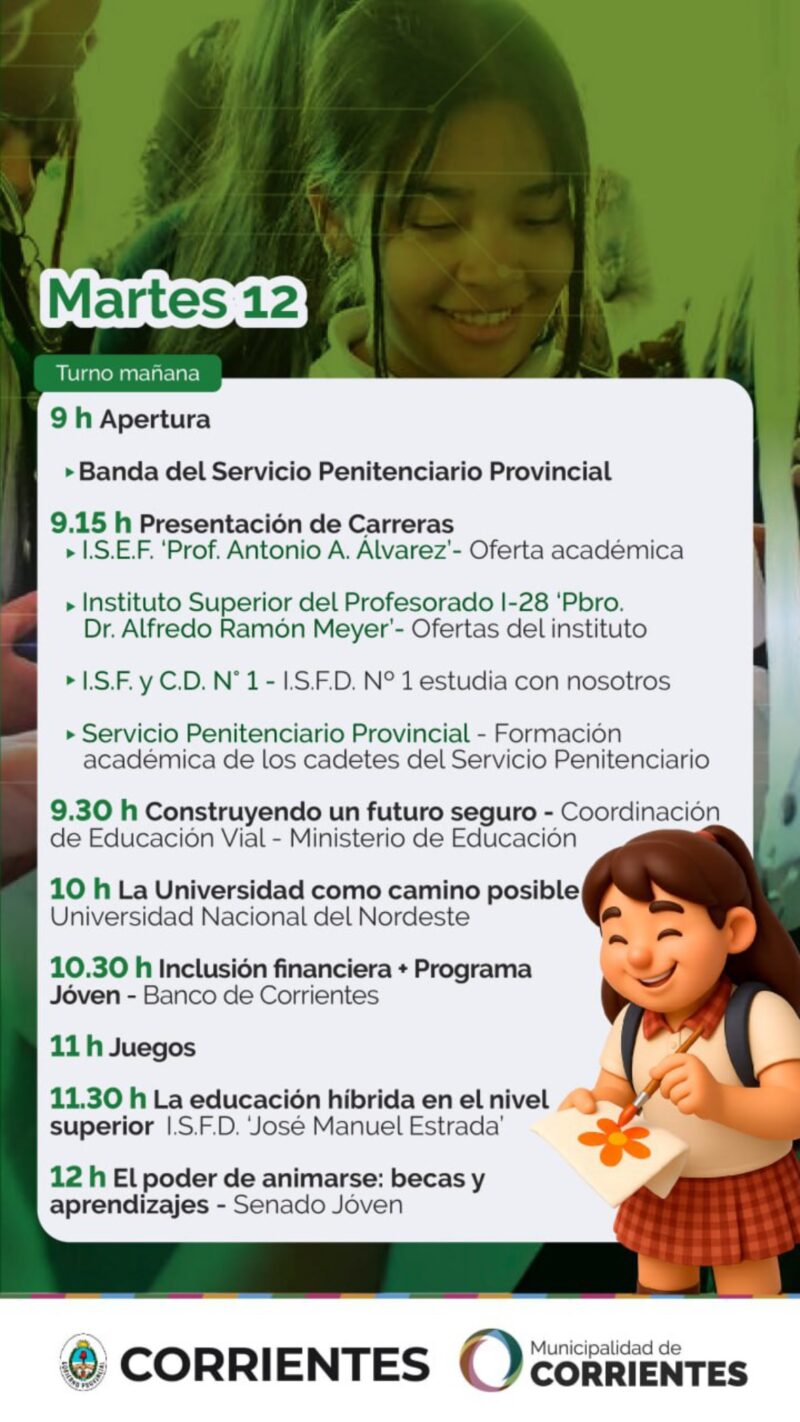 El evento se desarrolla de 9 a 18 bajo el lema «Elegir Corrientes, para estudiar, trabajar, emprender y disfrutar» en el Ex Regimiento de Infantería N° 9, ubicado en Av. Costanera, de la capital correntina.