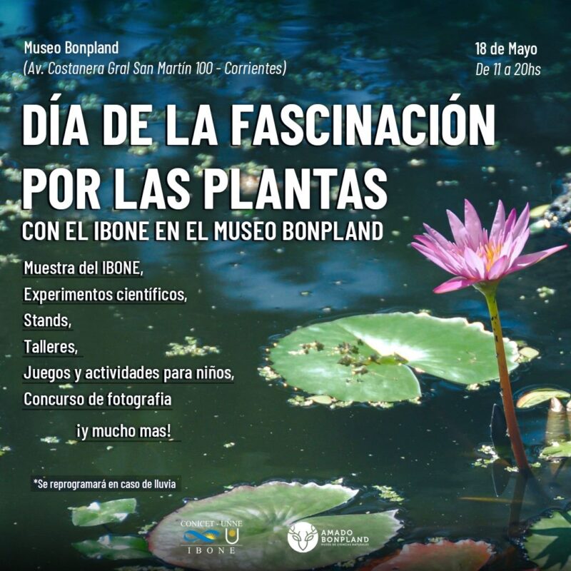 El Instituto de Botánica del Nordeste (Ibone, Conicet – Unne) participará del Día Internacional de la Fascinación por las Plantas (Fascination of Plants Day), una conmemoración que se impulsada por la Organización Europea para la Ciencia de las Plantas cada 18 de mayo. En esta oportunidad, investigadores, becarios y técnicos realizarán una actividad en el Museo de Ciencias Naturales Amado Bonpland, ubicado por costanera General San Martín al 100.