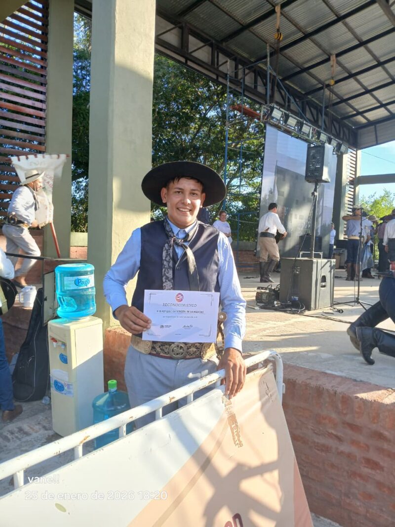 Entre los participantes estuvieron los integrantes de la agrupación Virgen de la Merced (Familia Vallejos), quienes recibieron el certificado de asistencia por parte del intendente de Riachelo, Nicolás Tejo.