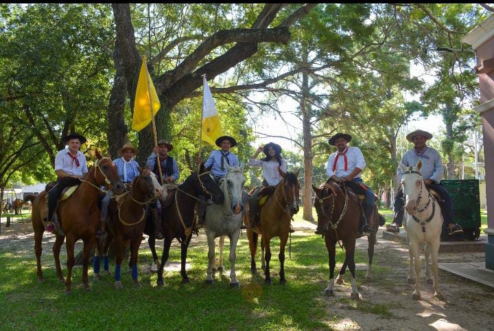 La «Virgen Morena», custodiada por los jinetes, encabezó el trayecto que culminó en el predio del Camping Puente Pexoa, un sitio que no solo ofrece un marco natural inigualable, sino que también resuena con la historia chamamecera de la región.