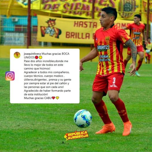 «Muchas gracias Boca Unidos» comienza el posteo que realizó en Instagram el futbolista pampeano para luego agregar, «pase dos años increible, donde me llevo los mejores recuerdos en este camino que hicimos» agregando, » agredecer a todos mis compañeros, cuerpo técnico, cuerpo médico, utileros, dirigentes, prensa y a la gente por siempre estar al pie del cañon. Agradecido de haber formado parte de esta institución, muchas gracias CABU!! cierra su comentario.
