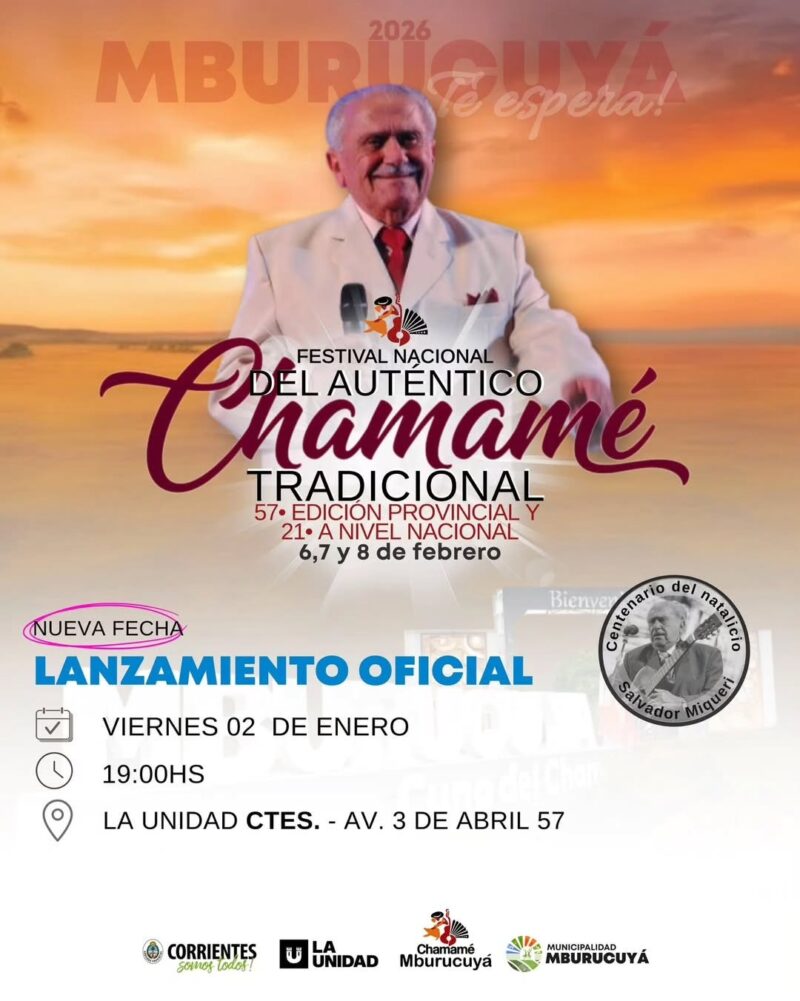 Desde la Municipalidad de Mburucuyá invitan a la comunidad a participar del Lanzamiento Oficial del Festival Nacional del Auténtico Chamamé Tradicional, en el marco de su 57ª Edición Provincial y 21ª a nivel Nacional.