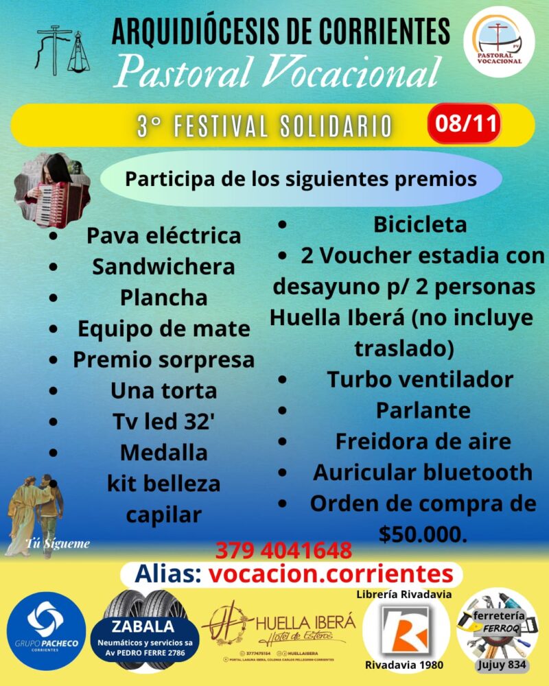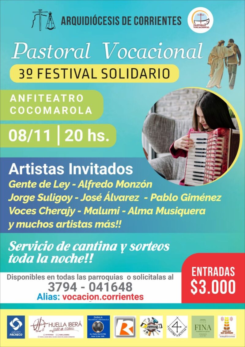 El próximo sábado 8 a partir de las 20, el Anfiteatro Mario del Tránsito Cocomarola será sede del 3º Festival Solidario a beneficio de los seminaristas correntinos, una noche de música, fe y fraternidad.