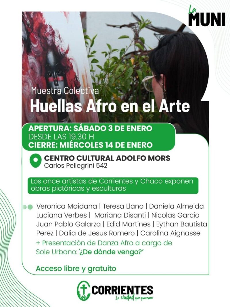 El puntapié inicial se dará mañana a las 19:30 en el Centro Cultural Adolfo Mors (Carlos Pellegrini 542). Se trata de la inauguración de la muestra colectiva Huellas Afro en el Arte, donde once artistas de Corrientes y Chaco exhibirán obras pictóricas y esculturas.