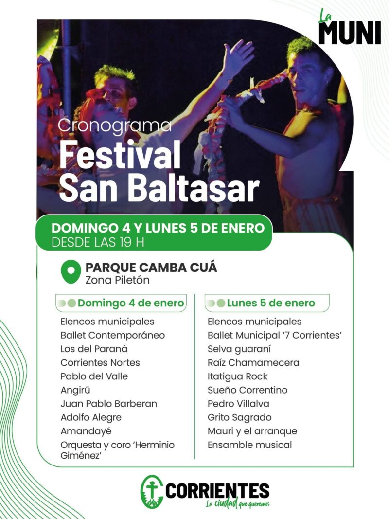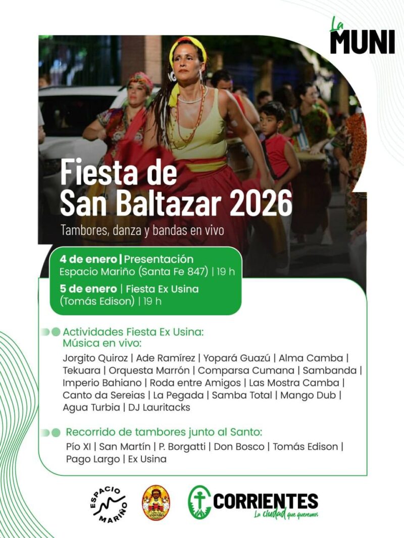 La ciudad se prepara para honrar a San Baltasar con una variada agenda que incluye el tradicional festival en el Parque Cambá Cuá, muestras pictóricas en el Centro Cultural Mors y el recorrido de tambores por las calles de la capital.