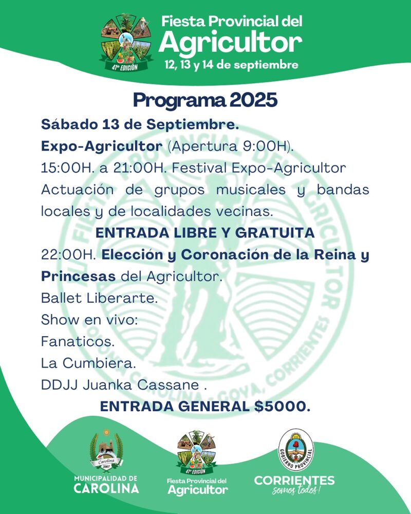 El evento se realizará desde el próximo viernes 12 al domingo 14 y como cada año tiene por objetivo rendir homenaje al trabajo de los agricultores de toda la provincia y de la región. No faltará la Expo Agricultores donde se realizarán diferentes exposiciones y también shows, bailes con elección y coronación de la Reina Provincial del Agricultor y otras actividades más que congregan a turistas y visitantes de distintas partes.
