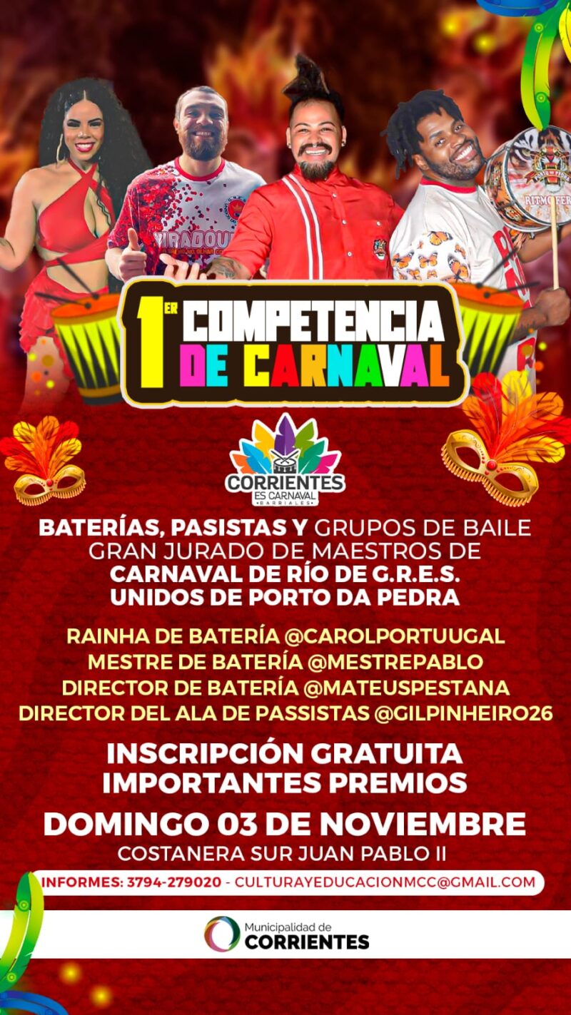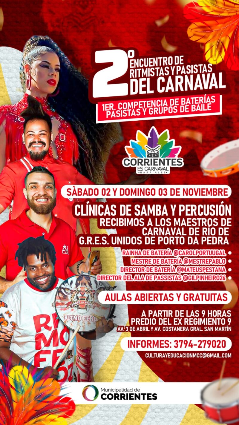 Este fin de semana del 2 y 3 de noviembre se realizará “Segundo Encuentro de Ritmistas y Pasistas del Carnaval” y la “Primera competencia de Baterías, Pasistas y Grupos de Baile”, organizado por la Municipalidad de Corrientes.
