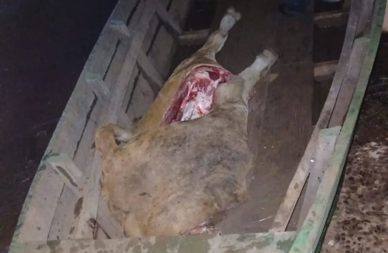 Durante uno de los recorridos, los efectivos detectaron una embarcación de madera con motor en cuyo interior transportaban cortes cárnicos vacunos, consistentes en una paleta y dos cuartos, procediendo a su secuestro.