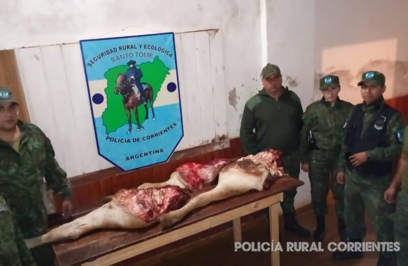 Posteriormente, en el destacamento “Vanguardia”, se llevaron a cabo pericias a cargo del médico veterinario policial, quien realizó el pesaje de la carne y extrajo muestras del cuero para determinar la posible identificación de la marca y su vinculación con los animales denunciados.