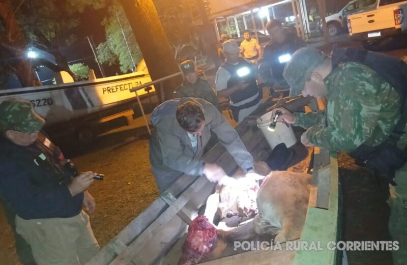 Durante uno de los recorridos, los efectivos detectaron una embarcación de madera con motor en cuyo interior transportaban cortes cárnicos vacunos, consistentes en una paleta y dos cuartos, procediendo a su secuestro.