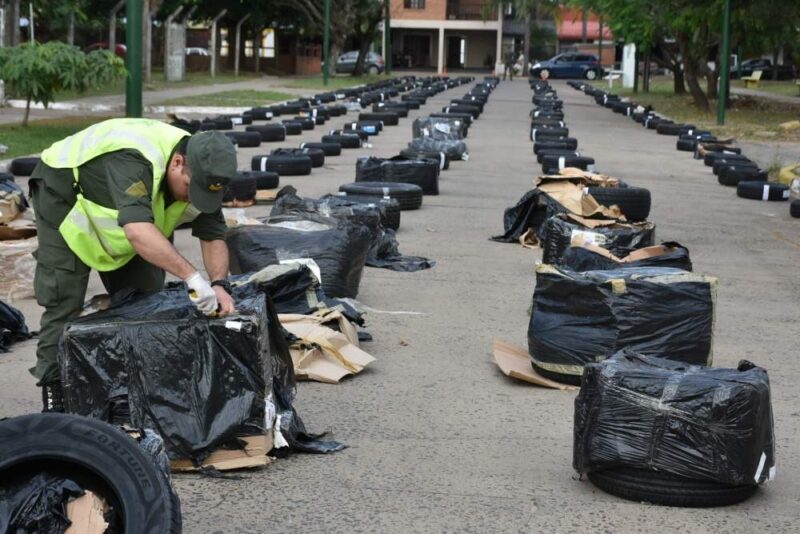 Ante la presunción de encontrarse frente a un hecho ilícito, los uniformados abrieron los bultos en presencia de testigos, constatando un total de 323 neumáticos, los cuales no contaban con el aval aduanero que justifique su legal ingreso al país.
