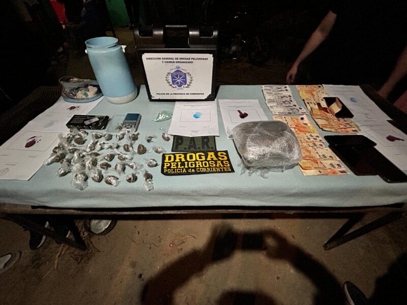 Al ingresar al inmueble, los investigadores se toparon con el clásico panorama de un «kiosco» de estupefacientes. Entre los elementos secuestrados, se destacaron: un envoltorio con 10 dosis de sustancia en polvo (cocaína), arrojando un peso de 1,43 gramos; una paquete compacto de sustancia vegetal (marihuana) que alcanzó los 1.032 kilogramos; además de dosis listas para la venta (38 pequeños envoltorios de marihuana), con un peso total de 81 gramos.