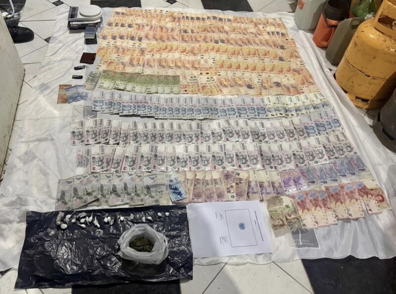 Entre los elementos incautados se destacan: Dosis de cocaína y marihuana. Más de $1.000.000 en efectivo (pesos argentinos). Motocicletas utilizadas para el delivery de estupefacientes (una Honda y una Brava). Balanzas de precisión. Teléfonos celulares. Elementos de corte y fraccionamiento